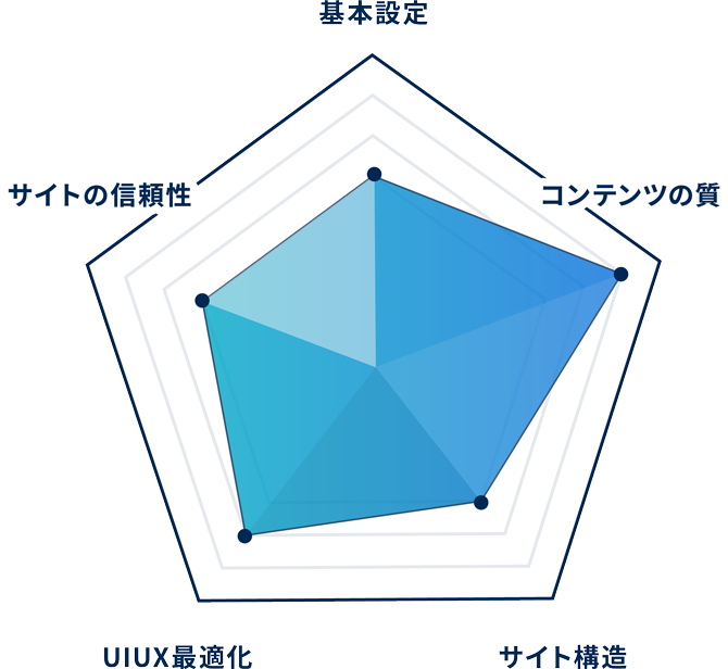 エドムインクリメントのSEO簡易診断では、SEO対策を5つの項目に分けて、多角的な視点から約50項目をチェックいたします。